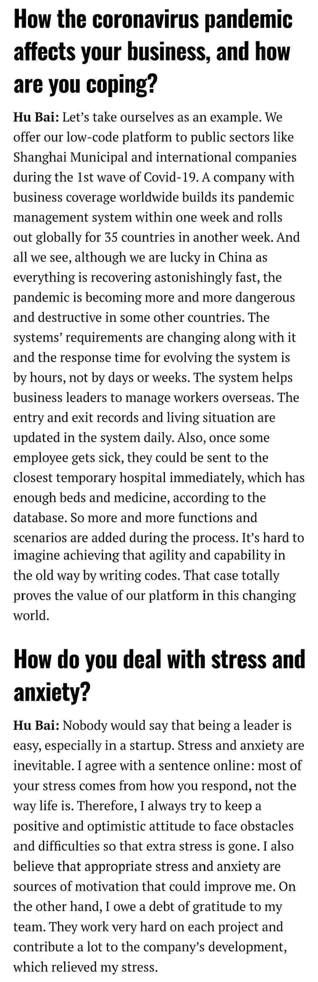 2021年年初,,,,爱湃斯科技CEO胡柏受邀接受法媒Startup.info的专访,,,,,,,,,与Startup info的读者分享了自己的创业经历、、、、、、、、以及低代码平台NO钱包的创新之处。。。。。。。。。。。。。。